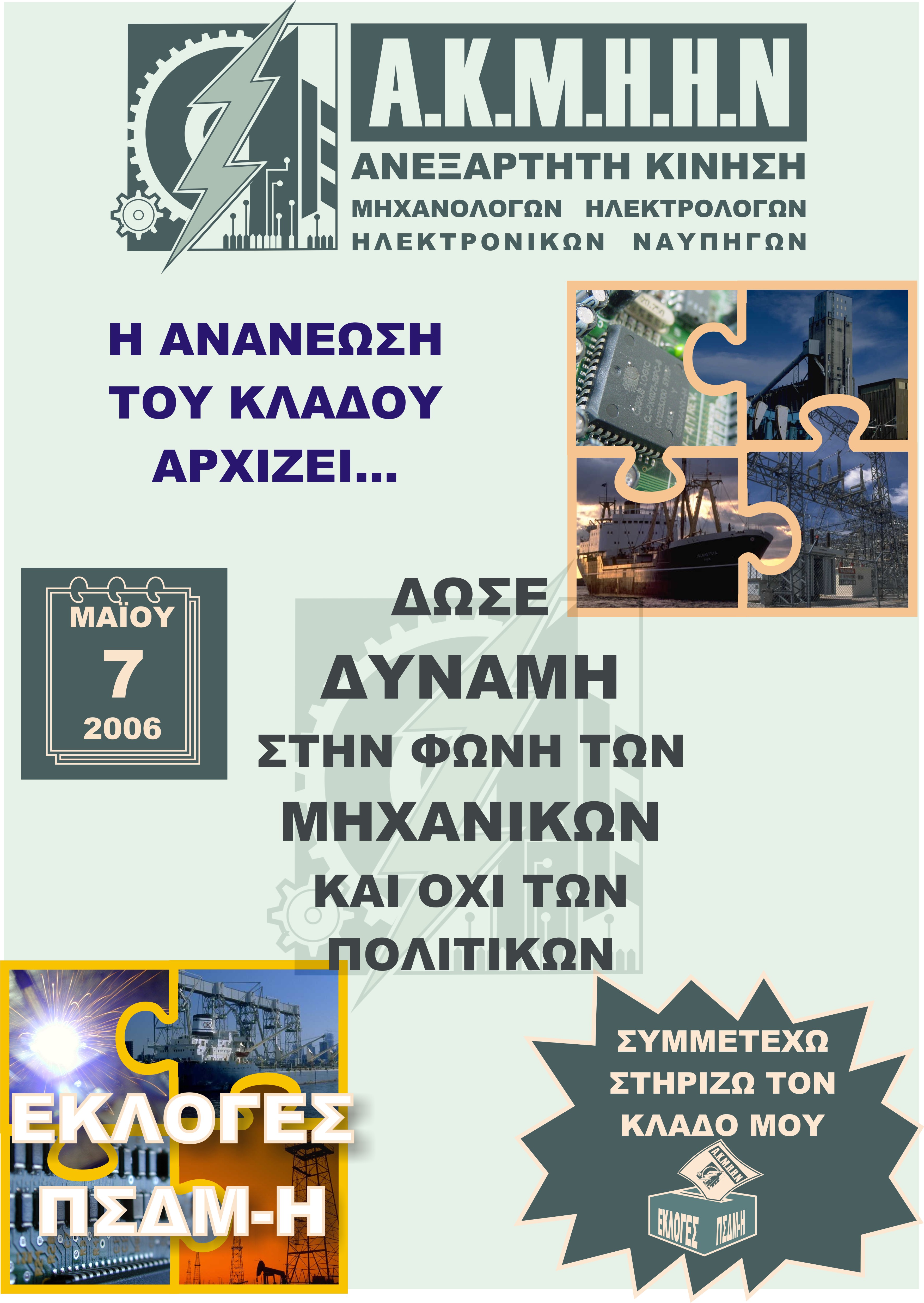 "Κατεβάστε" εδώ την αφίσσα της Κίνησης για τις εκλογές του ΤΕΕ 2006. Η αφίσσα αυτή έγινε με βάση την πρωτότυπη αφίσσα την οποία φιλοτέχνησε ο αείμνηστος συνάδελφος Αθανάσιος Αθανάσογλου